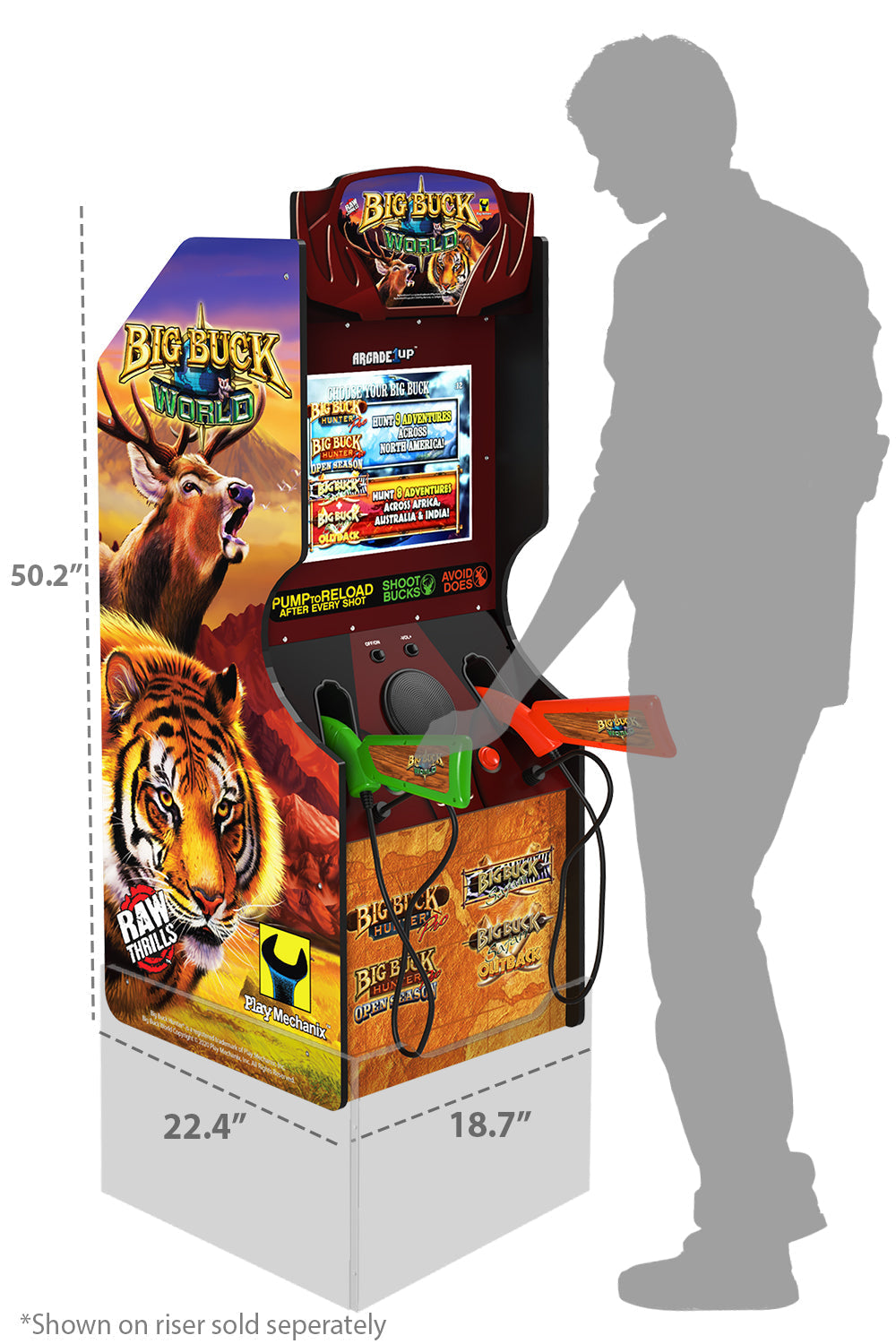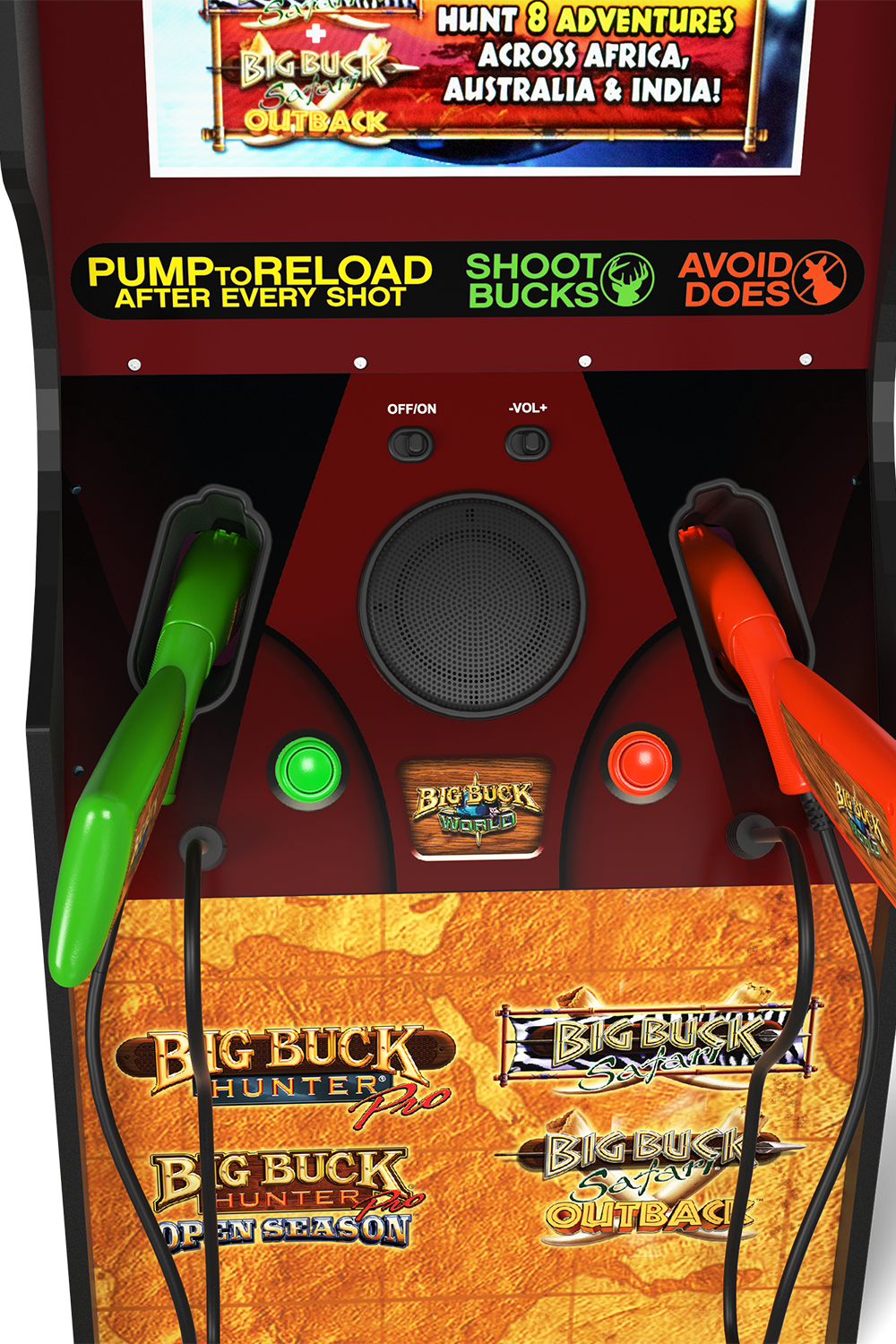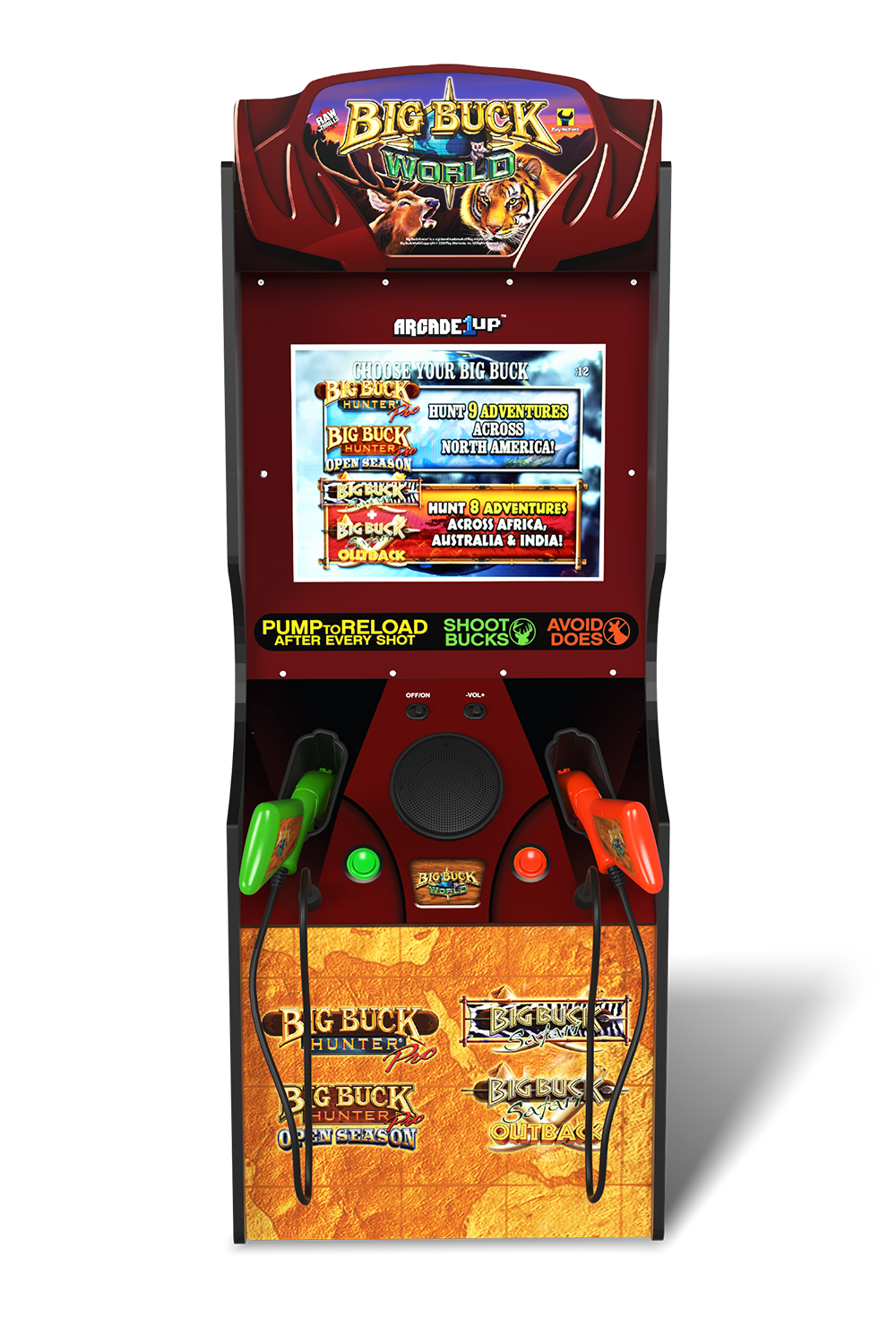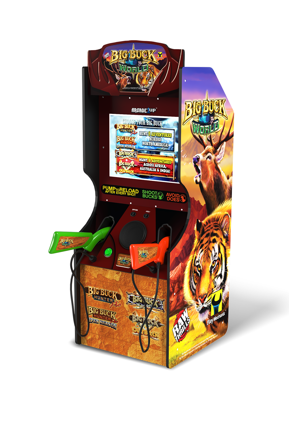 Experience the thrill of the great outdoors in the comfort of your own home with Arcade1Up’s Big Buck World⢠Classic Arcade Machine. Get ready for an unparalleled hunting adventure as you wield two pump-action rifles equipped with SINDEN light gun technology.