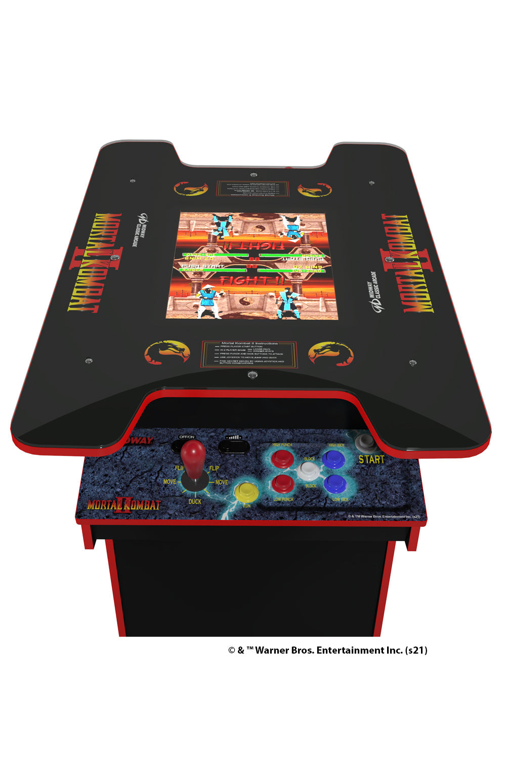 Standing 29” high, head-to-heads play great, look great, and are instant conversation pieces. And YES, they have clear cover tops, to protect from those accidental spills! Easily assembled, you’ll be executing those over-the-top Mortal Kombat finishing moves in no time. Satiate your thirst for (digital) blood with the eternally popular Mortal Kombat™, Mortal Kombat 2™, and Ultimate Mortal Kombat 3™.