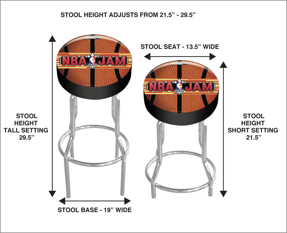 Level up your gaming sessions with officially licensed stools from Arcade1Up! 2 stools in 1, you can build your stool at either 21.5” for the standard Arcade1Up cabinet; or add the included leg extenders to make a 29.5” stool, the perfect height for an Arcade1Up cabinet on a riser. Each stool has sturdy chrome legs and thick, comfortable foam padding for those long gaming sessions. Comfortable while you play, stylish while you’re away – these stools are a must for every Arcade1Up fan!