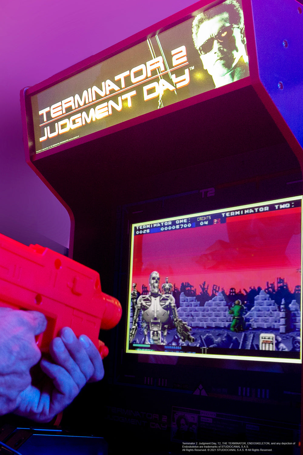 Terminator 2: Judgment Day, T2, THE TERMINATOR, ENDOSKELETON, and any depiction of Endoskeleton are trademarks of STUDIOCANAL S.A.S. All Rights Reserved. © 2021 STUDIOCANAL S.A.S. ® All Rights Reserved.